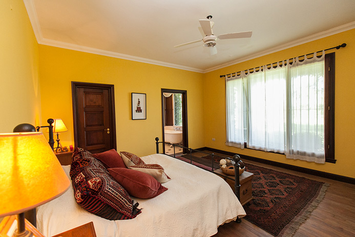 We enter the main house through an entrance hall that directs us towards the living room and the dining room. It has a playroom, 1 bedroom suite with a dressing room and 2 other bedrooms with a bathroom, a kitchen, office, pantry, and maid’s quarters.